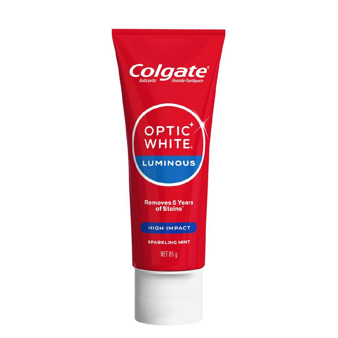 Smile on! We believe glowing confidently starts by owning your smile. It doesn't matter what others think, as long as you keep your smile strong you can rock your day. Optic White Expert High Impact Teeth Whitening Toothpaste with 2% Hydrogen Peroxide deeply whitens teeth up to 4 shades* and whitens teeth with the whitening ingredient that dentists use**. Helps to remove stains from coffee, wine and soft drinks. Colgate Optic White Expert High Impact toothpaste is: - Enamel safe for daily use. - Vegan. - Sugar free. - Gluten free. Size: 85g Flavour: Sparkling Mint With the same ingredient that dentists use to whiten teeth, we're here to help you be unstoppable. So flaunt your look and feel your best, knowing there is a little magic in every white smile. *When brushing twice daily for 6 weeks. Individual results may vary **Contains gentle, lower strength hydrogen peroxide