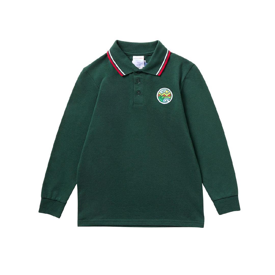 Whitau School Long Sleeve Polo with Badge.Made in Polyester Cotton Pique fabric and designed for comfortable fit.