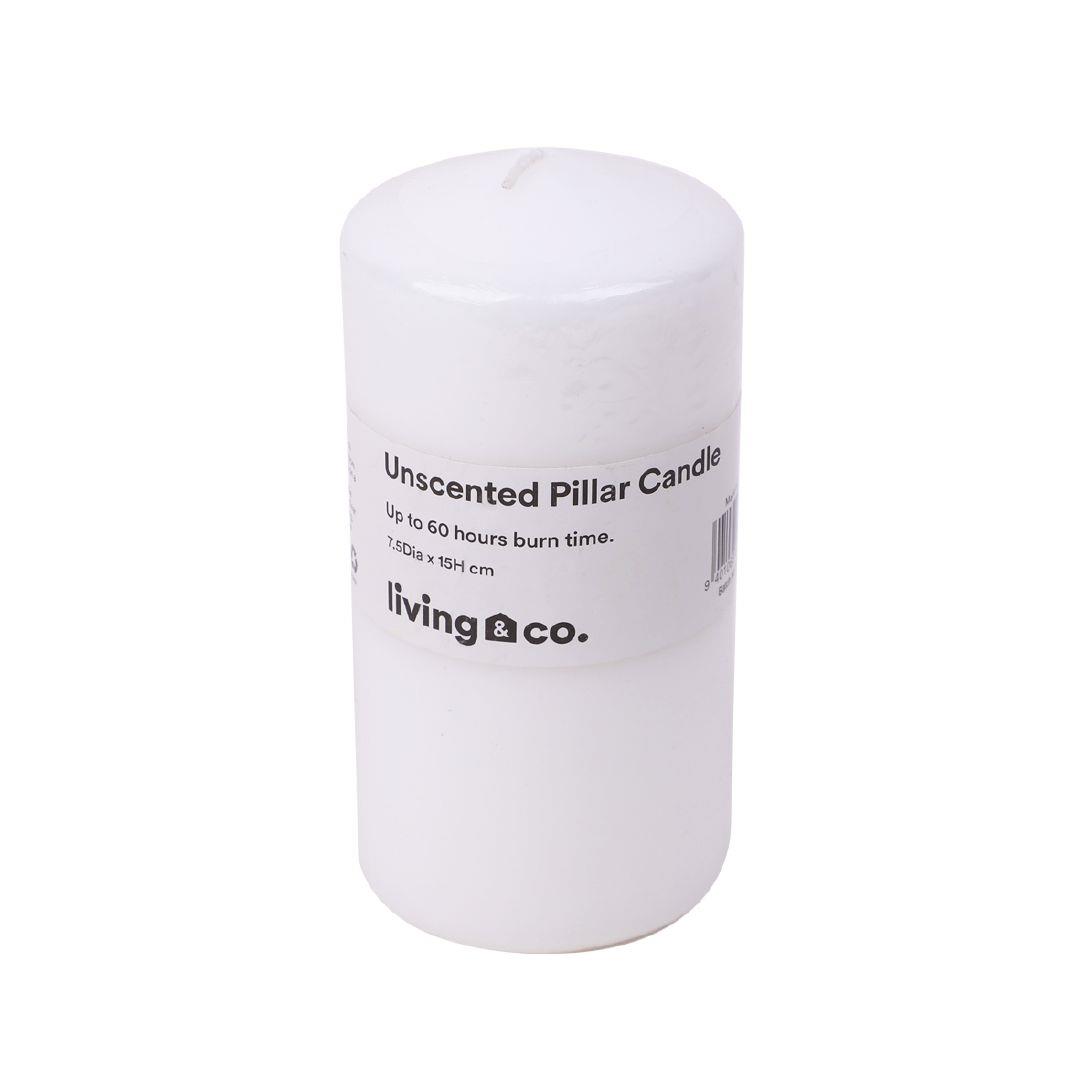 Living & Co Unscented Pillar Candle White 7.5x15cm