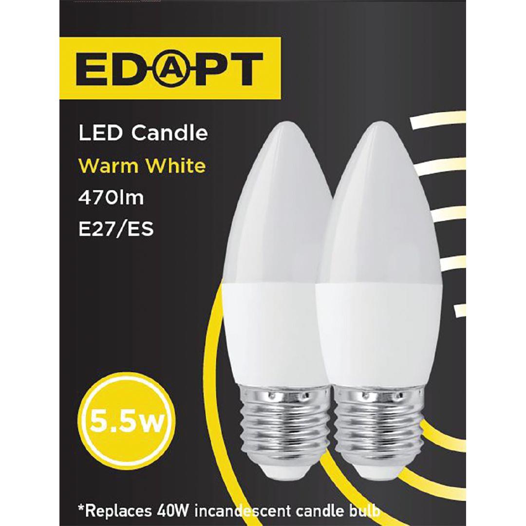 Edapt LED E27 Candle Light Bulb 5.5W Warm White 2 Pack