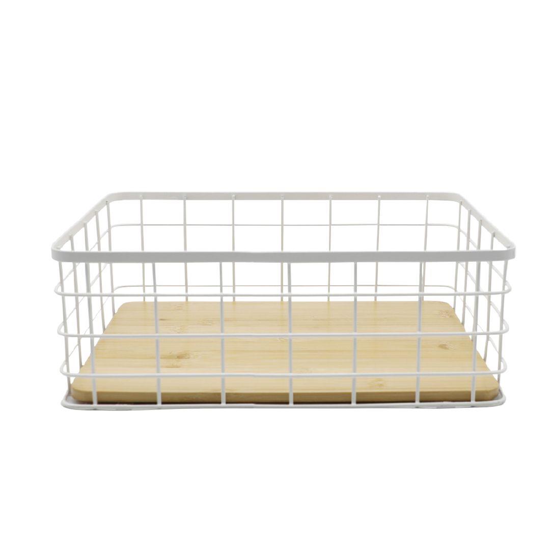 Living & Co Metal Basket with Bamboo Base White