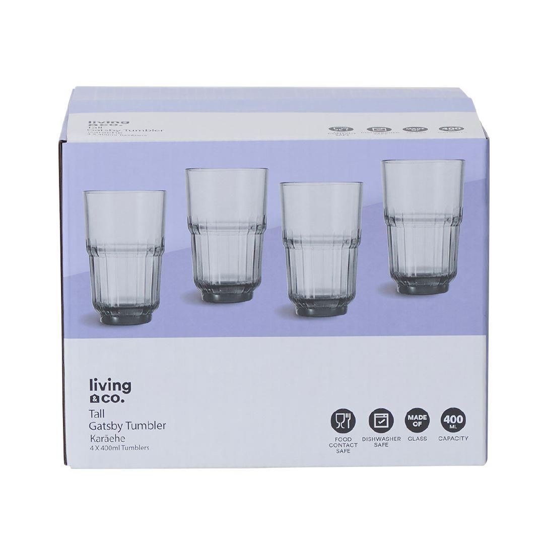 Living & Co Gatsby Glass Tall 400ml Grey 4 Pack