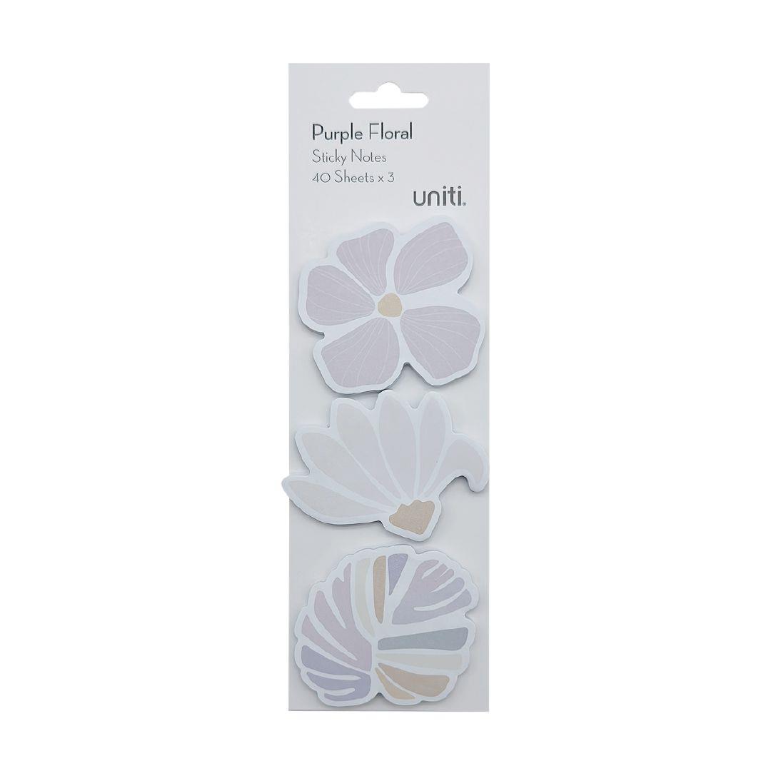 Uniti Floral Sticky Notes Purple Mid 3 Pack
