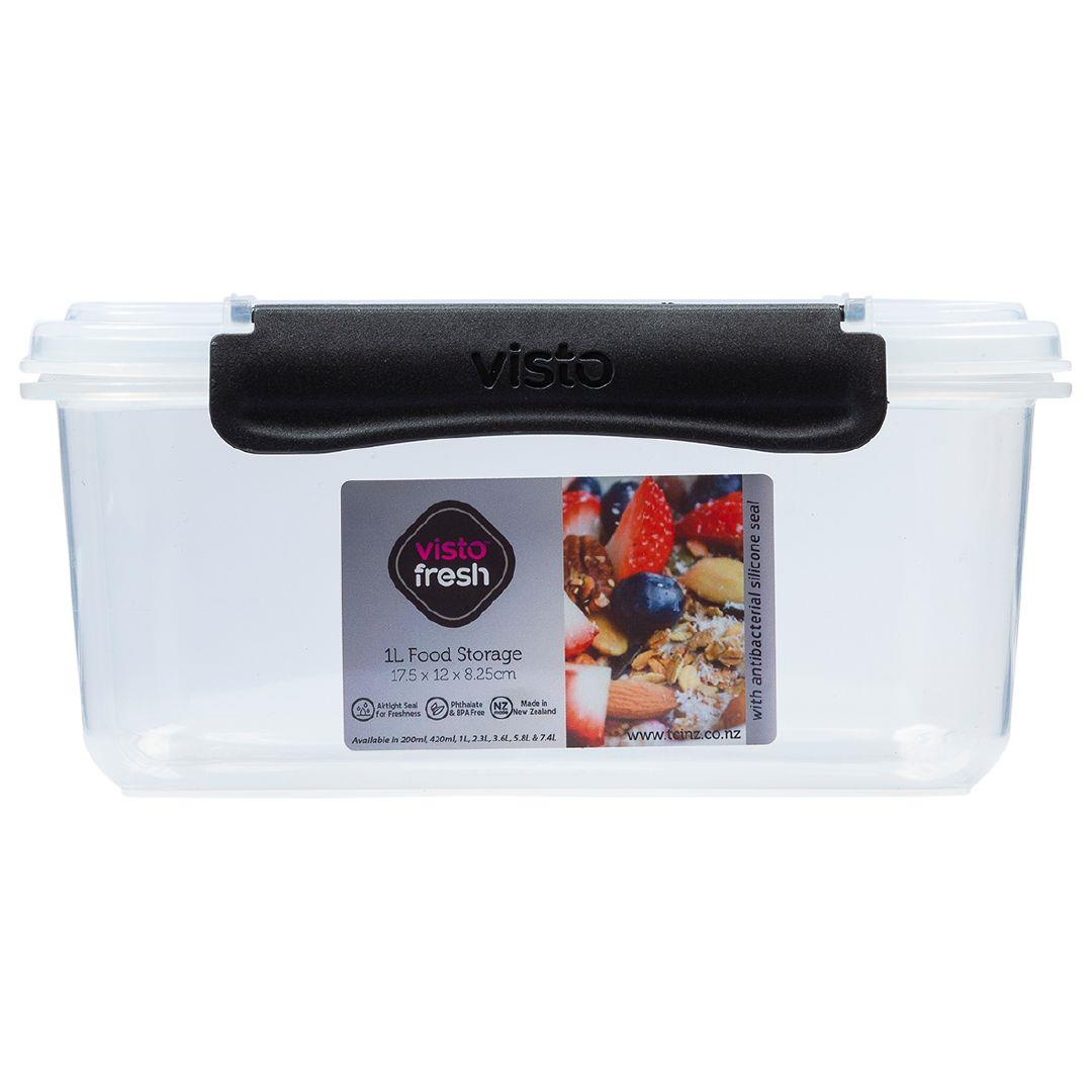 Visto Fresh Storage Container Clear/Charcoal Clips 1 Litre