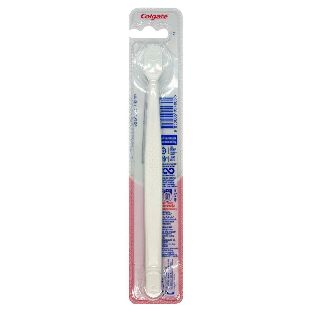 - The Colgate Total Active Prevention Foaming Clean Soft Manual Toothbrush features 2x more† high-density Floss-Tip bristles (1) that reach deeper (2) along the gumline and between teeth to help clean hard to reach areas most prone to dental problems. Plus, this soft toothbrush uses high density center pads to polish away stains and disrupt plaque buildup.