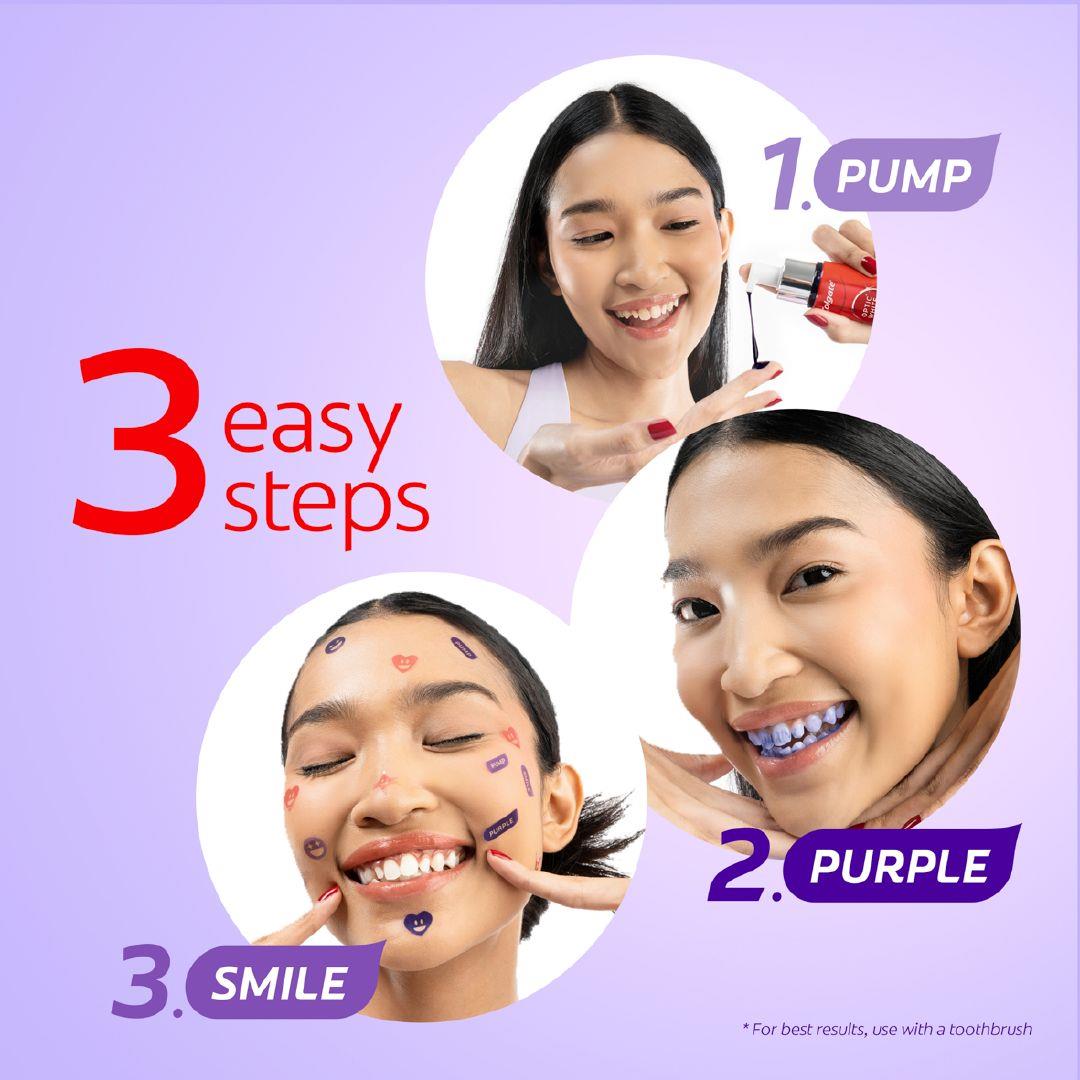 - A 3 Step Whitening Boost: Pump, Purple, Smile!