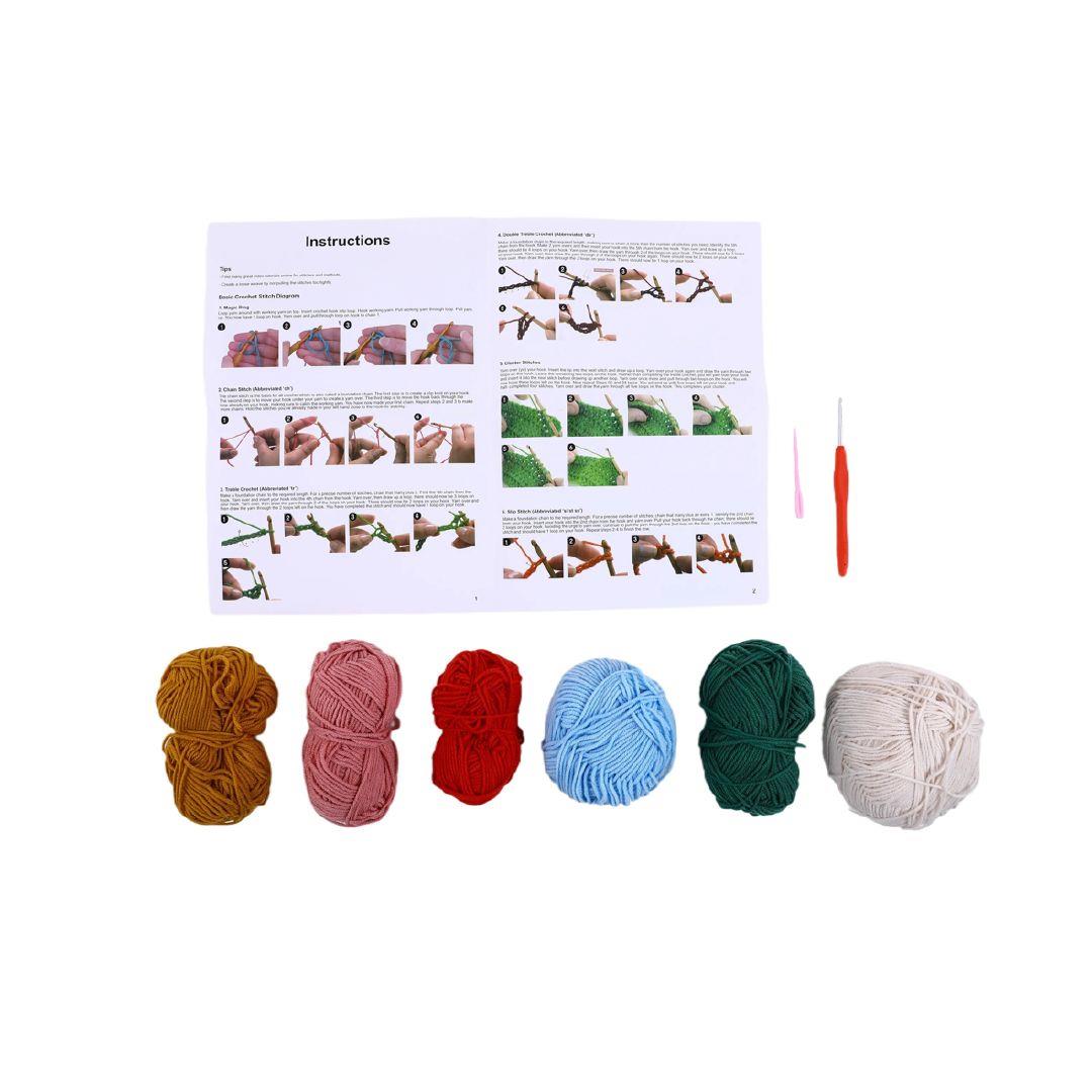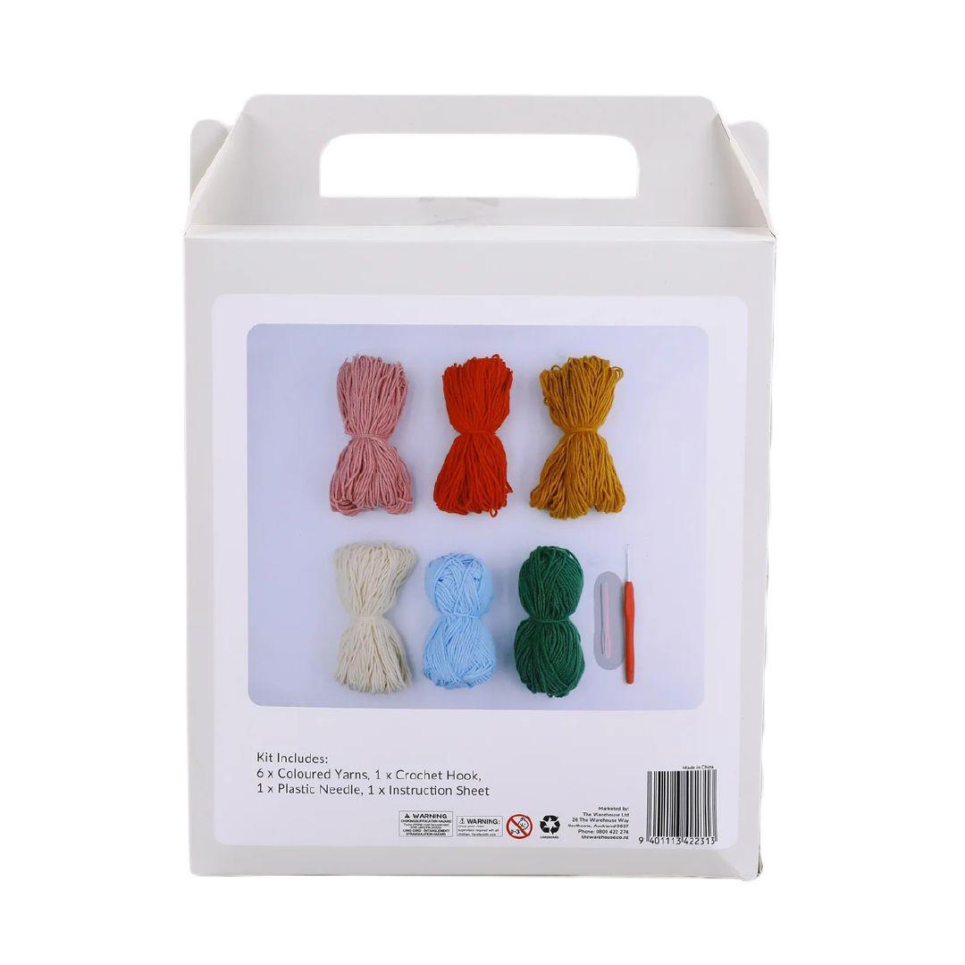 - Includes: 6 x coloured yarns, 1 x crochet hook, 1 x plastic needle, 1 x instruction sheet