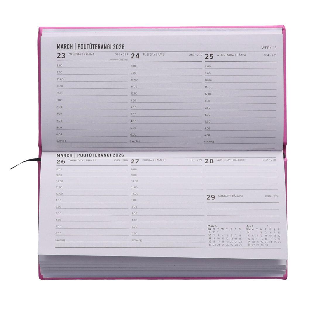 Stay organised and in control of your year with the WS 2026 Slimline Diary in a pop pink colour. Designed for professionals, students, and anyone who values structure, this diary offers ample space for daily planning and a range of practical reference features to support both local and international schedules.