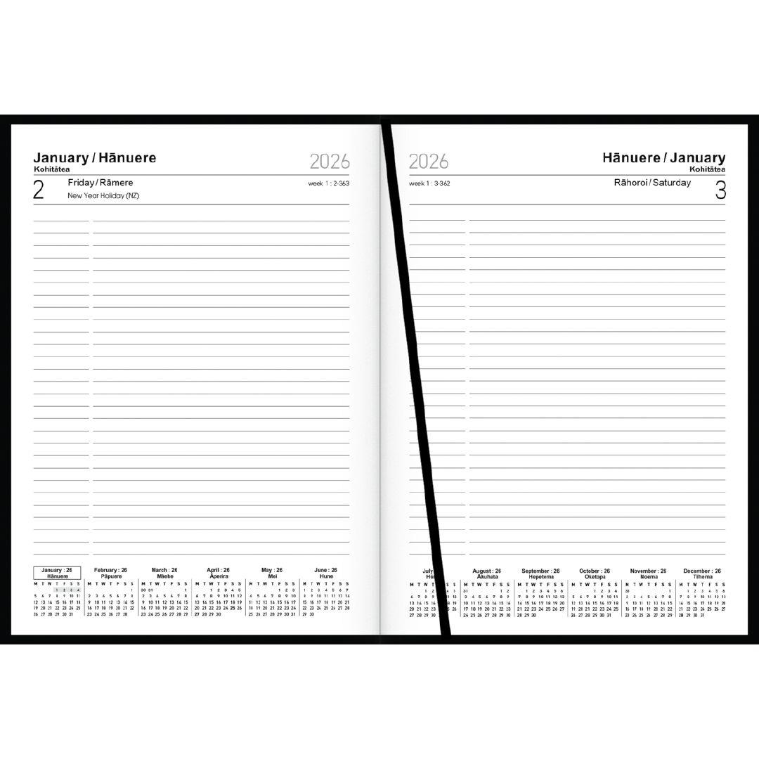 The Collins 2026 Day to Page Diary in English and Māori is a beautifully designed A5 planner, perfect for keeping track of your daily activities in both languages. A must-have for bilingual planners.