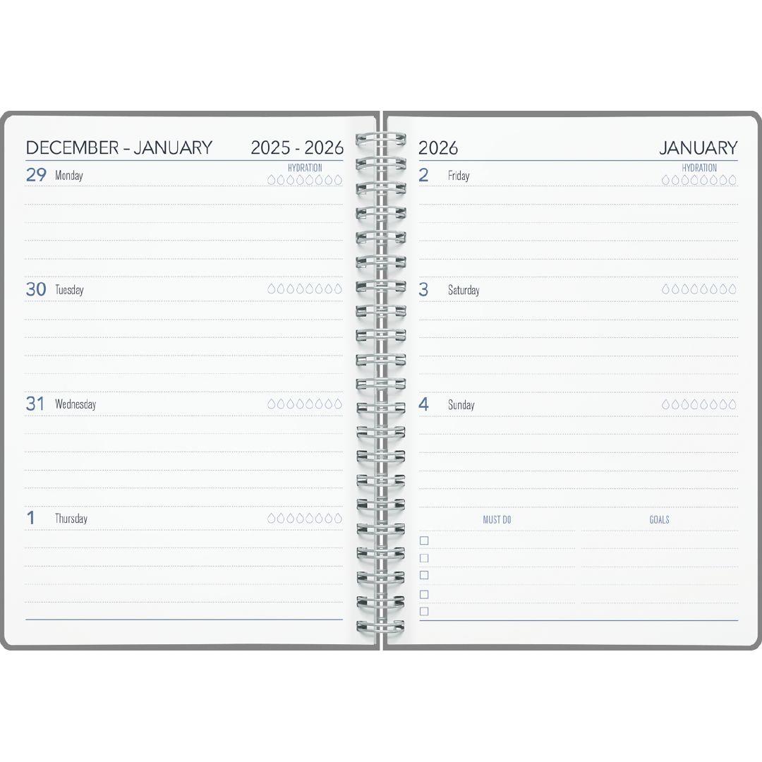 - A5 Diary with one week per opening layout