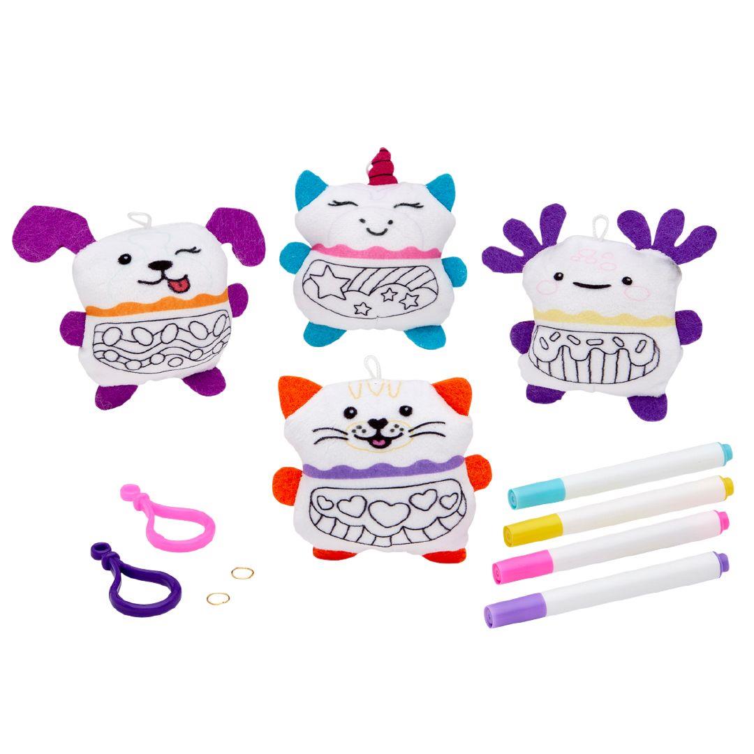 - Includes 2 mini plushies & 4 markers