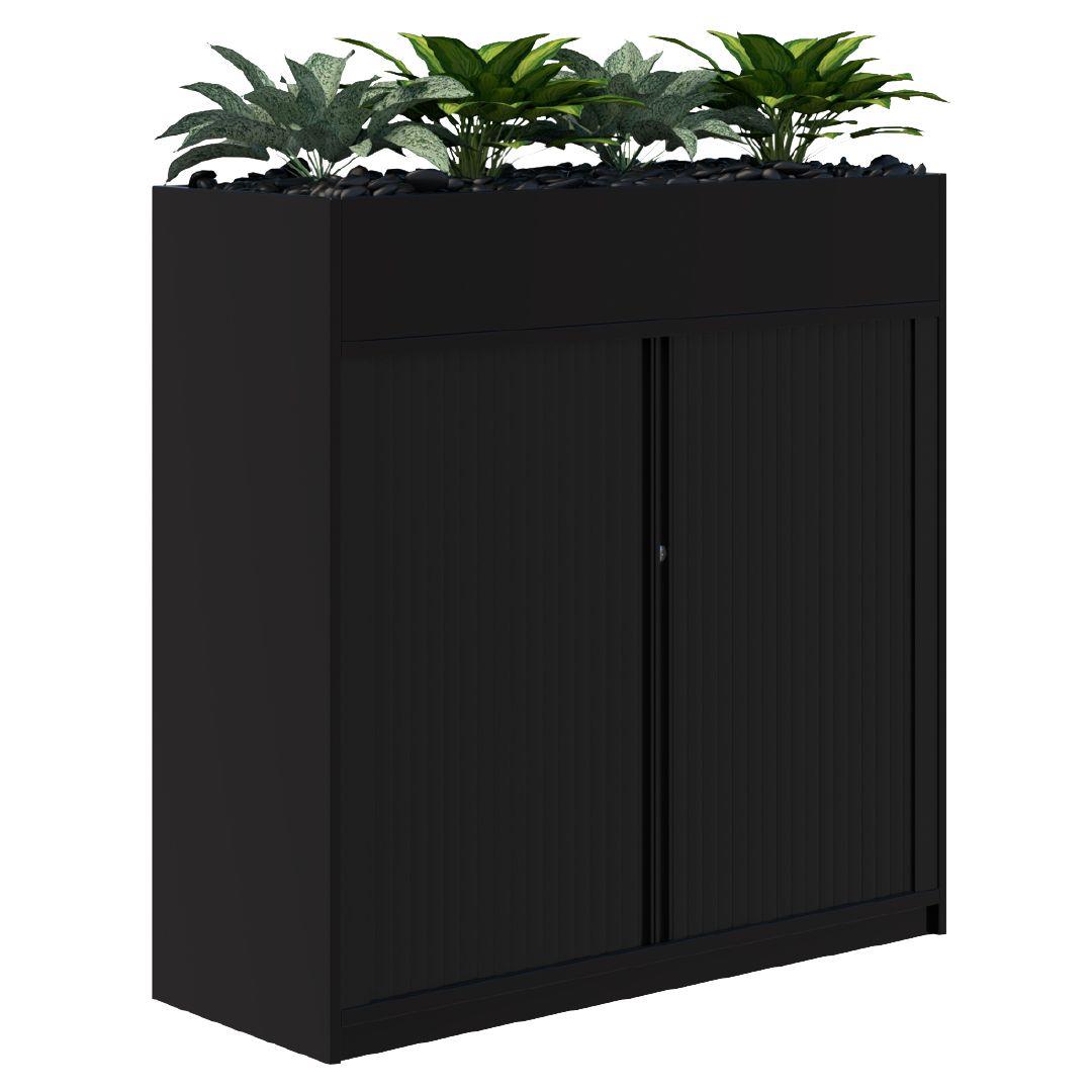 Enhance your workspace with the sleek and functional Rapid Tambour Planter, designed to bring greenery and organisation into any office environment. With a modern black finish and integrated artificial plants, this unit combines style and practicality - perfect for creating a calming, biophilic atmosphere in shared spaces, reception areas, or breakout zones.