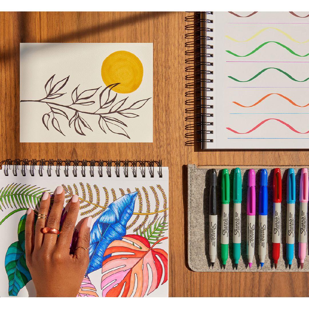From broad strokes to fine details, Sharpie Brush Twin Permanent Markers do it all! On one end, they’re brush markers with a flexible brush tip for lines that vary from thick to thin—all in one stroke! On the other end, they’re an ultra fine tip permanent marker that provides precise control. These dual-tip markers are perfect for everyday marking, lettering, and details on paper, plastic, metal, and most other surfaces. Like all Sharpie permanent markers, the intensely brilliant colours create eye-popping, vibrant impressions. With this versatility, Sharpie Brush Twin Permanent Markers let you transform ordinary surfaces into creative statements!