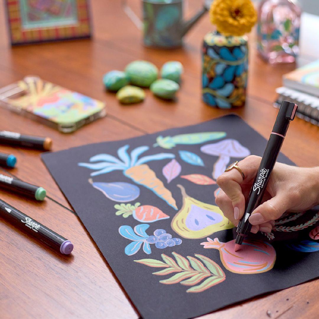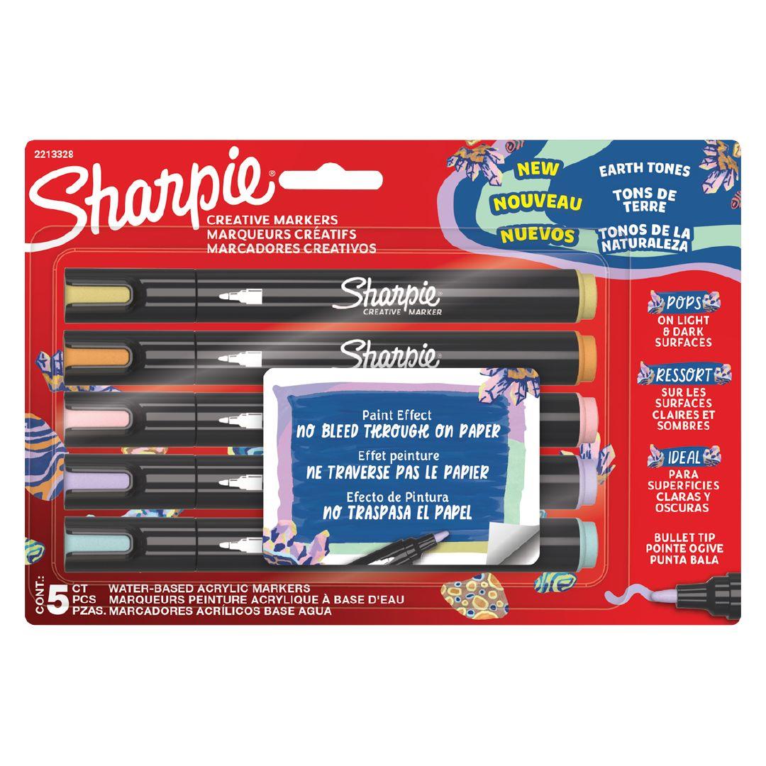 Bring a vivid, natural touch to your artistic vision with the Earth Tones collection of Sharpie Creative Markers! These acrylic markers feature stunning paint-like ink that glides across the page with the control of a marker. The water-based ink won’t bleed through paper, so your work stays clean. The bright color markers create vibrant marks on light and dark surfaces and boldly mark on paper, metal, wood, ceramic, glass, rock, canvas, and more. The Earth Tones collection introduces vibrant colors inspired by nature. What’s more, there’s no need to shake with these bullet tip markers—simply uncap and create!
