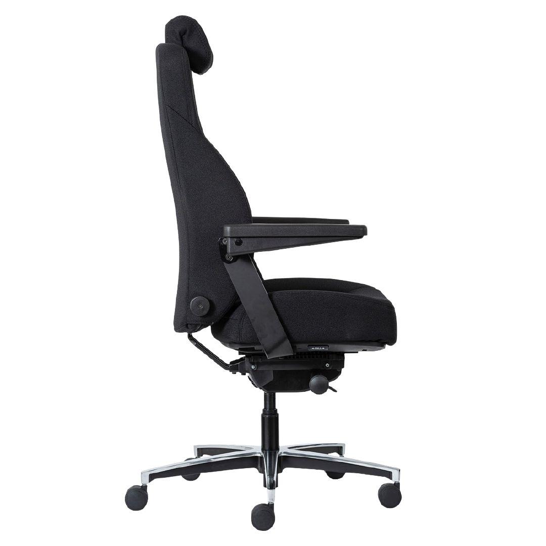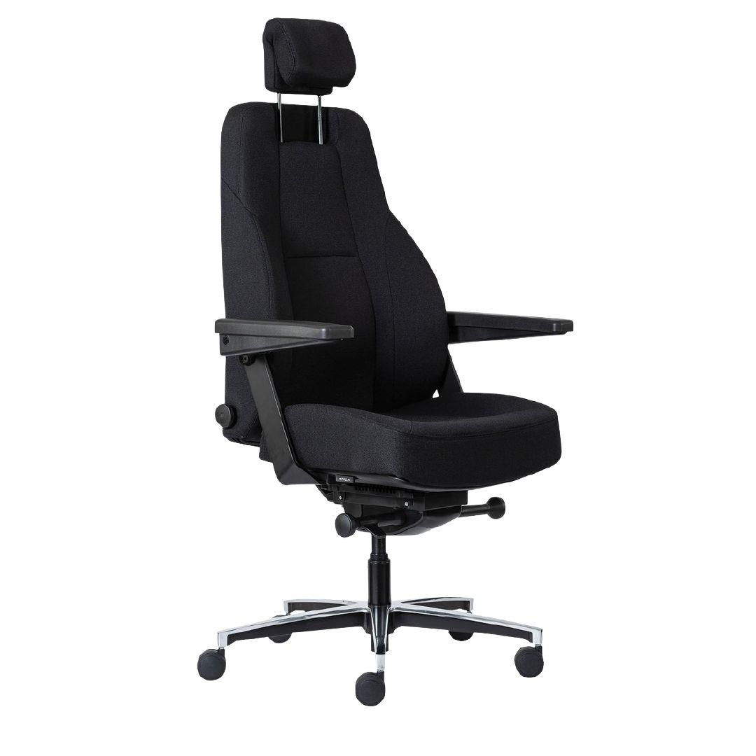 The Buro Maverick 24/7 Controller chair is a heavy-duty seating solution built for intensive work environments such as call centres, surveillance rooms, and control rooms. Experience superior comfort with a body-contoured, wide padded seat and an extra-high backrest. Its adjustable ergonomic features allow seamless optimisation for multiple users in 24/7 shift-work settings. Personalise your seating experience with depth-adjustable lumbar support, a height- and depth-adjustable headrest, and robust retractable folding armrests that can be effortlessly tipped up or tucked away under your desk. Durable and supportive, the Buro Maverick 24/7 Controller chair delivers reliable comfort tailored to your unique needs.