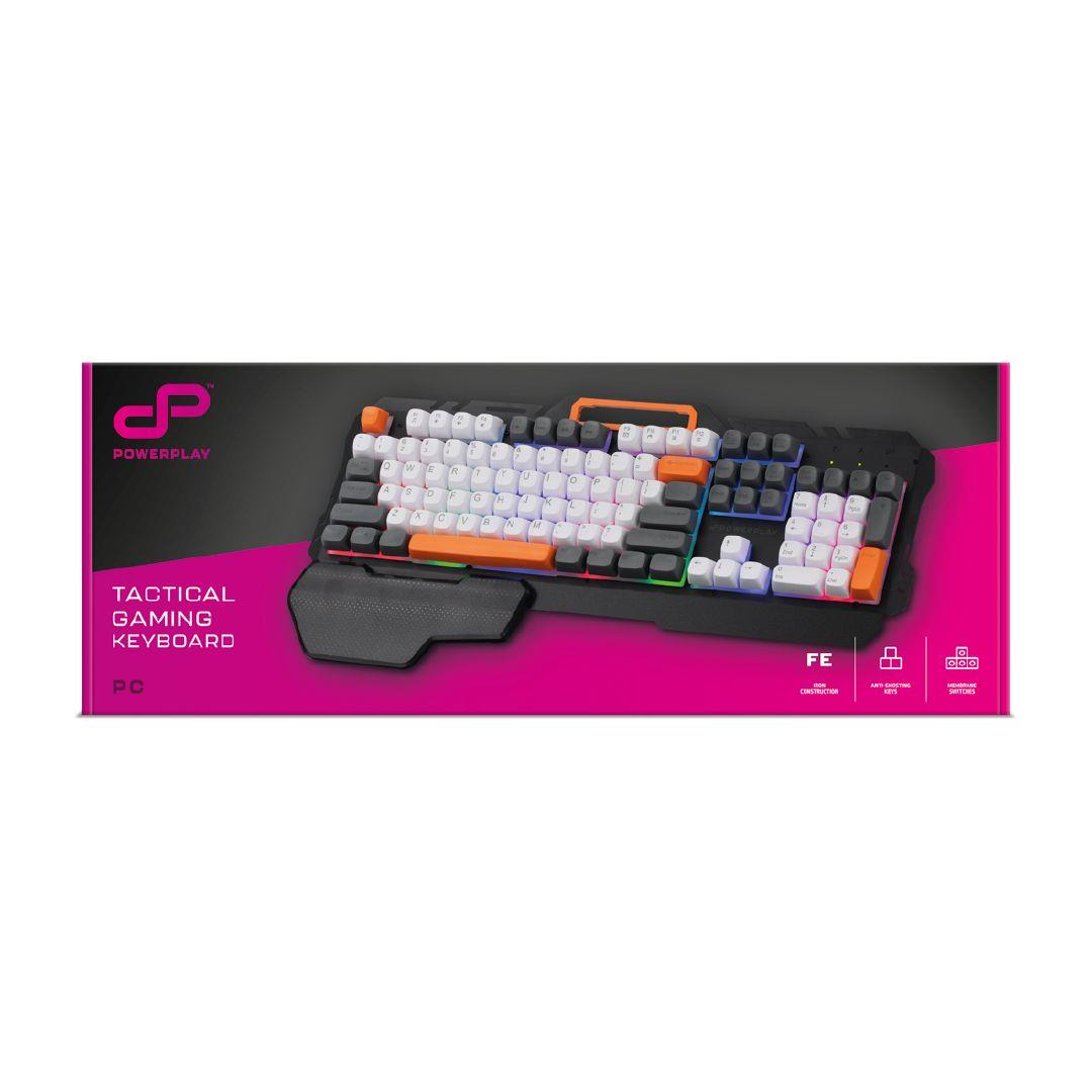 The striking PowerPlay Tactical Gaming Keyboard combines durability, style, and performance for every battle. With a sturdy iron panel, vibrant 3-color backlighting, and 19-key anti-ghosting, it's built to keep up with your fastest moves. Its 104-key layout and long-lasting membrane switches deliver reliable precision, while the comfortable wrist support keeps you locked in for marathon sessions.
