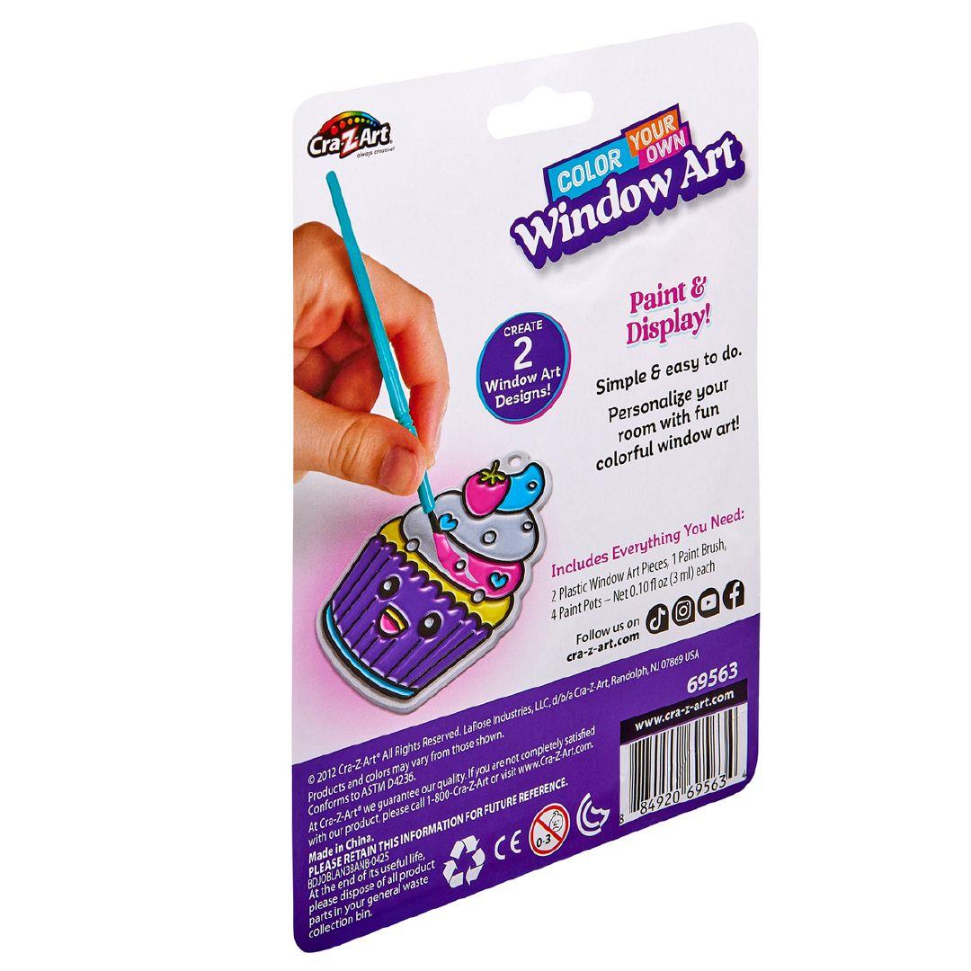 - Includes everything you need, 2 plastic window art pieces, 1 paint brush, 4 paint pots