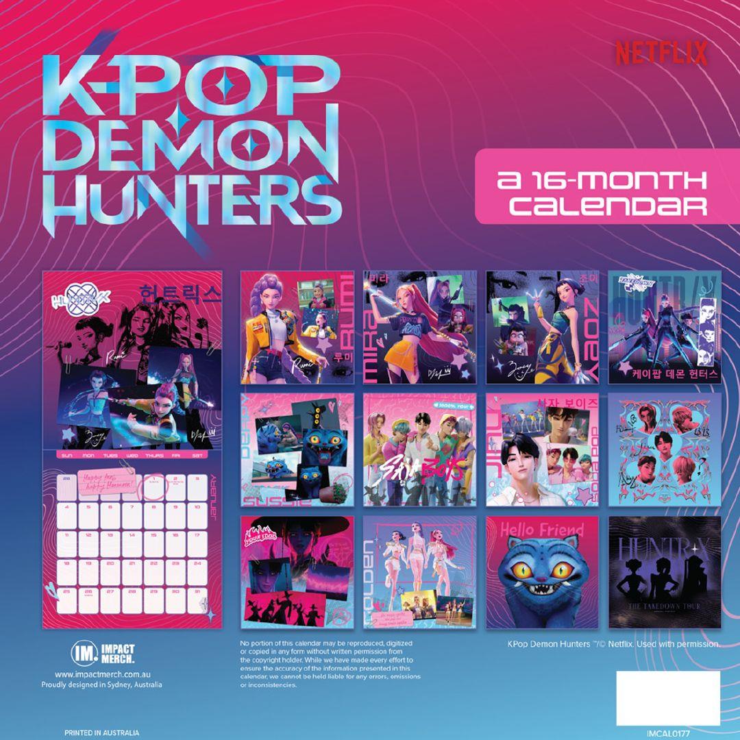 Dive into a year of music-meets-magic with the 2026 K-Pop Demon Hunters Calendar, created for devoted fans who crave vibrant art, iconic idol energy, supernatural action, and the unstoppable trio of demon-slaying K-pop thrills all year long. Sixteen-month wall calendars feature monthly pages for January 2026 to April 2027. Each monthly page includes federal holidays and moon phases, with sufficient daily blocks for jotting down tasks and appointments to help you stay organised. Features 13 high-quality images printed on premium paper certified by the Forest Stewardship Council. Perfect for hanging on your wall, corkboard or bulletin board at home, school or the office.