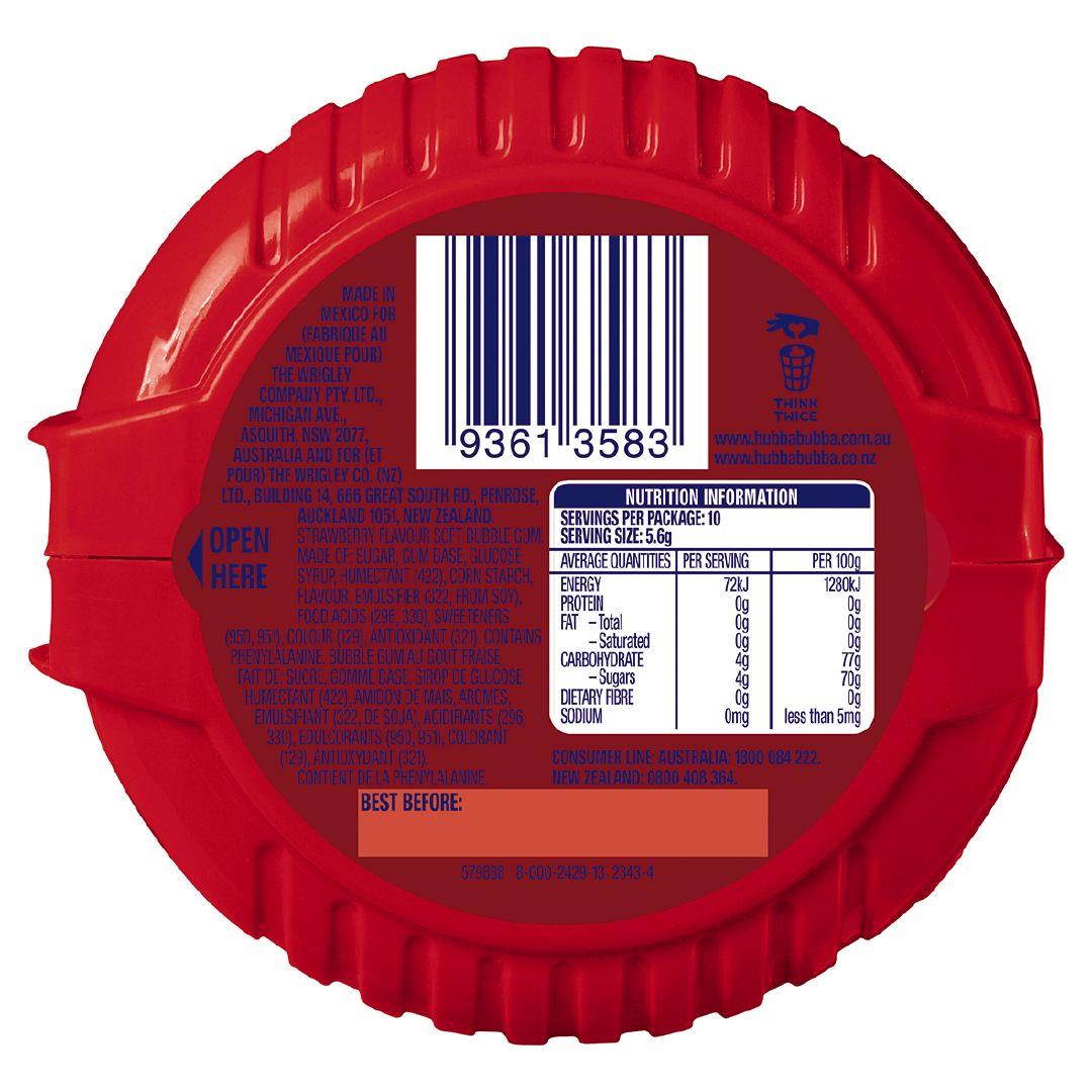 "It’s Funbelieveable! Enjoyed by consumers since 1979, Hubba Bubba Strawberry Tape packs mouth watering flavours into seriously soft, fun bubblegum that makes blowing the biggest, baddest bubbles a breeze. "