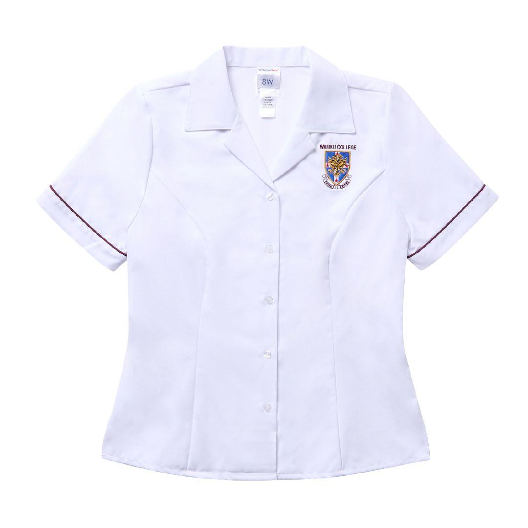 Waiuku Blouse with contrast trim at sleeves. Made from woven Polyester Viscose and designed for comfortable fit.